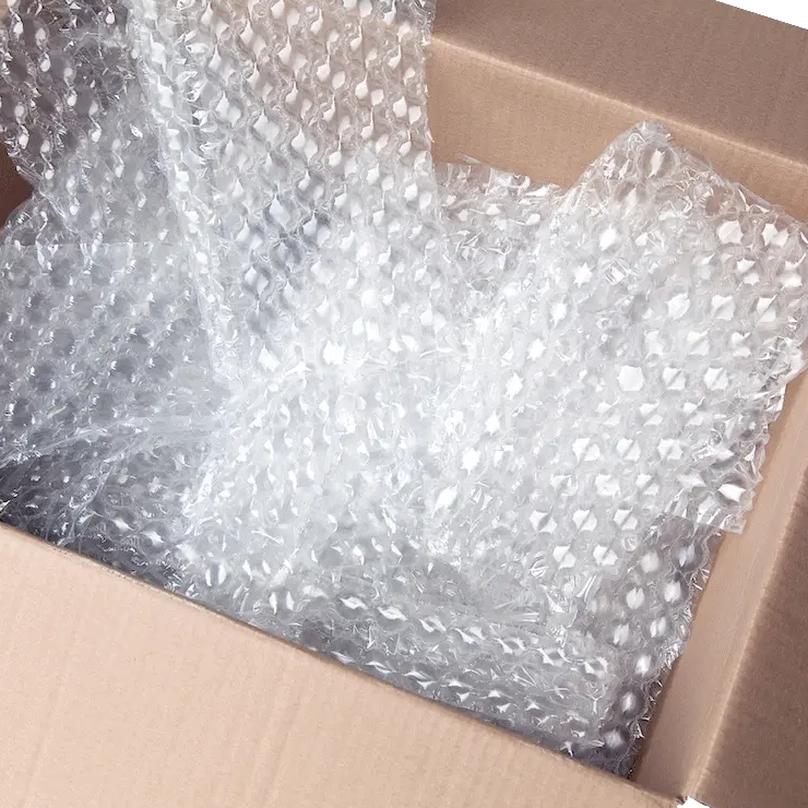 For at beskytte dine varer bedst muligt under transporten bruger vi boblefolie, der er produceret af 50% genanvendt plast.