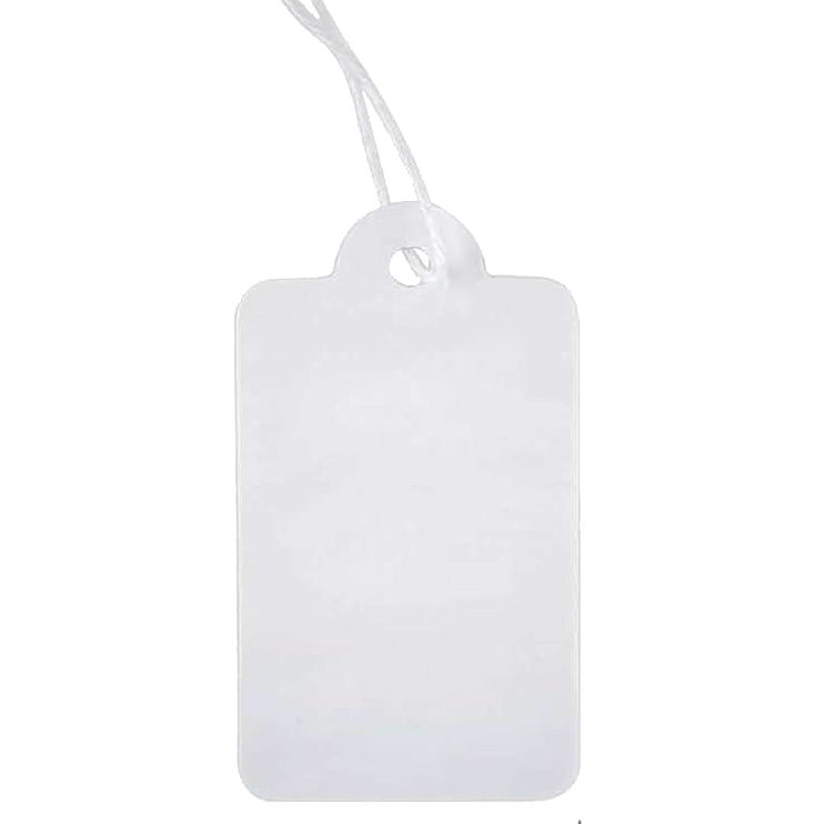 Vores hangtags er lavet af pap, men er påsat et klistermærke med information om varen.